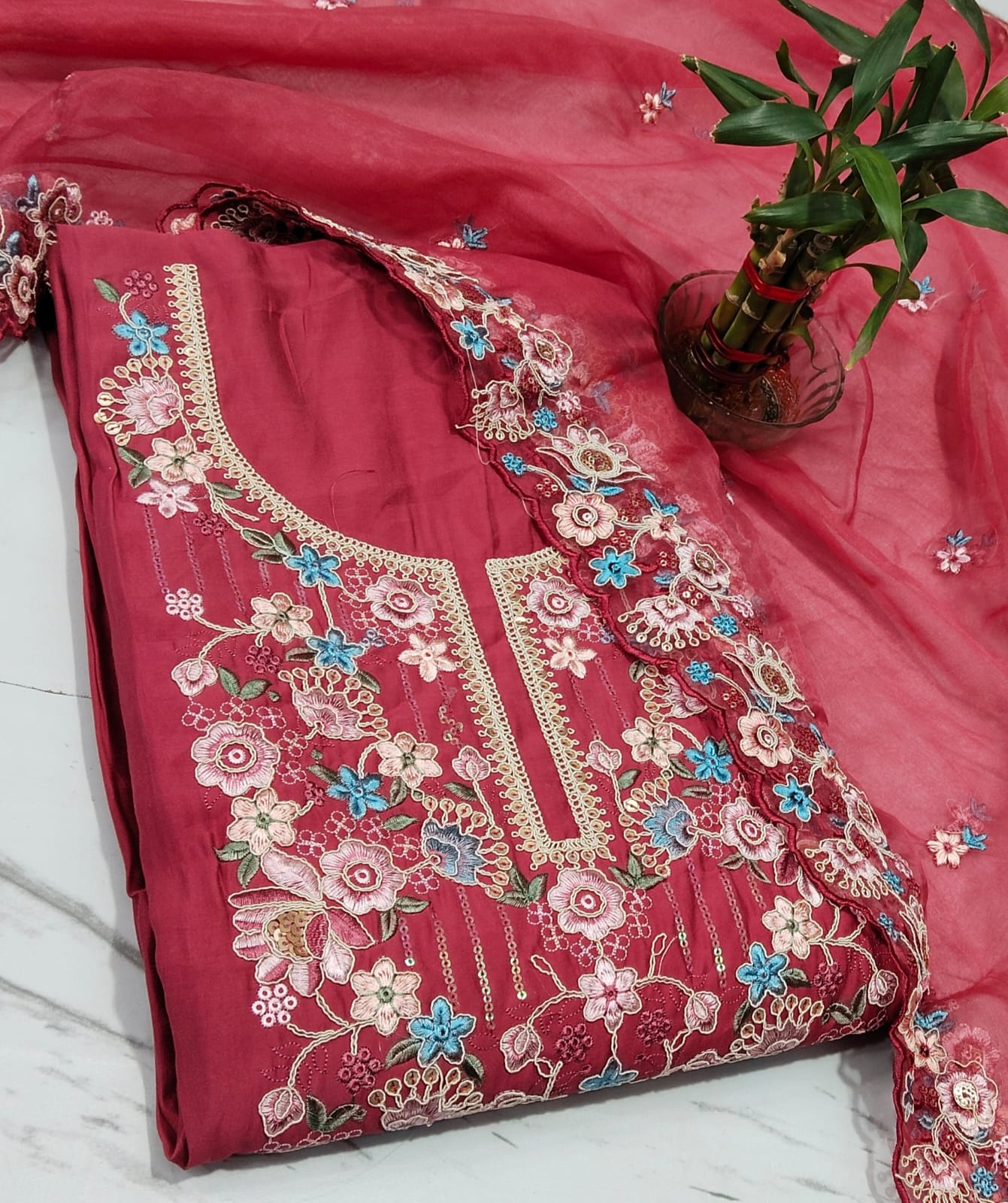 🧣Dupatta pure Ourganja silk with beautiful Embroidery work