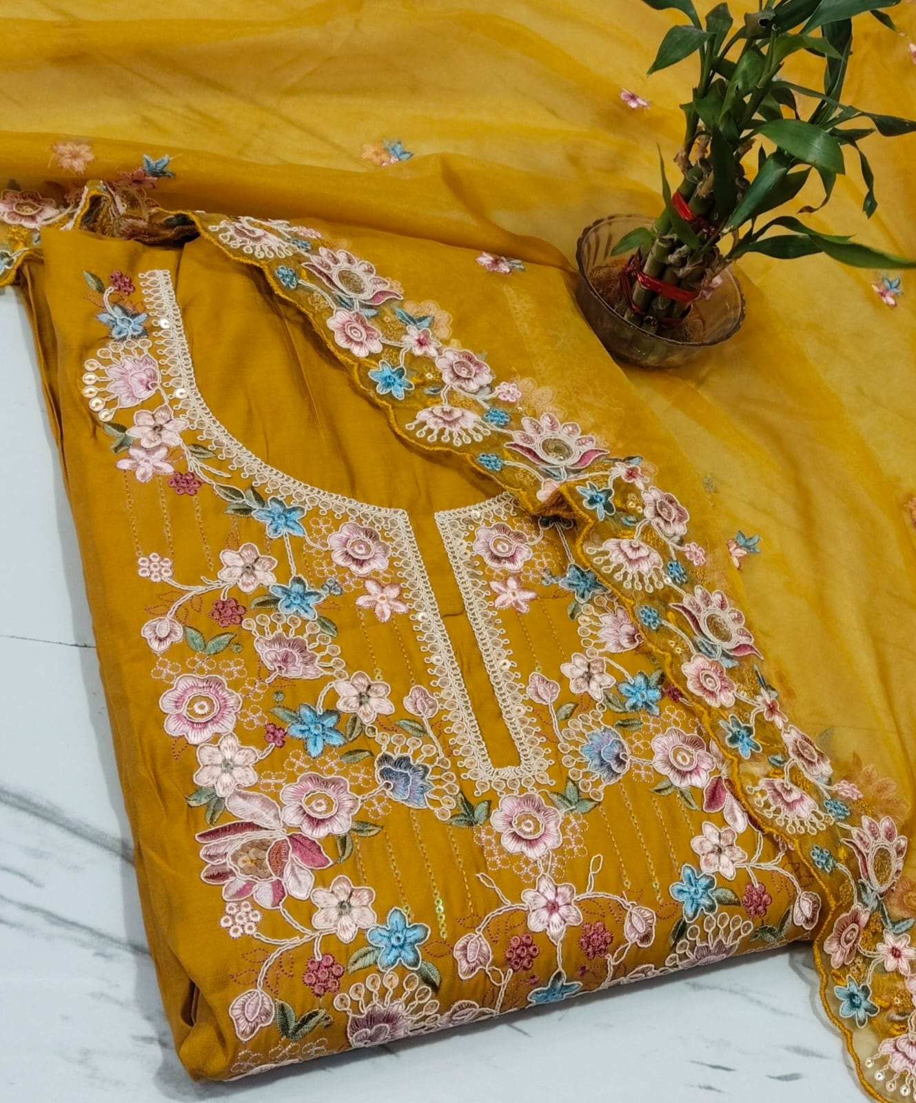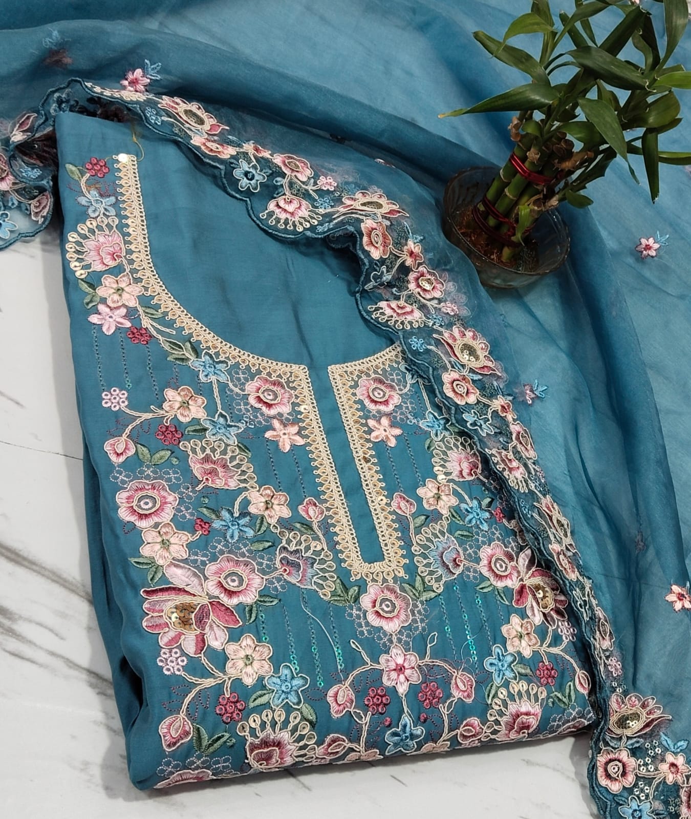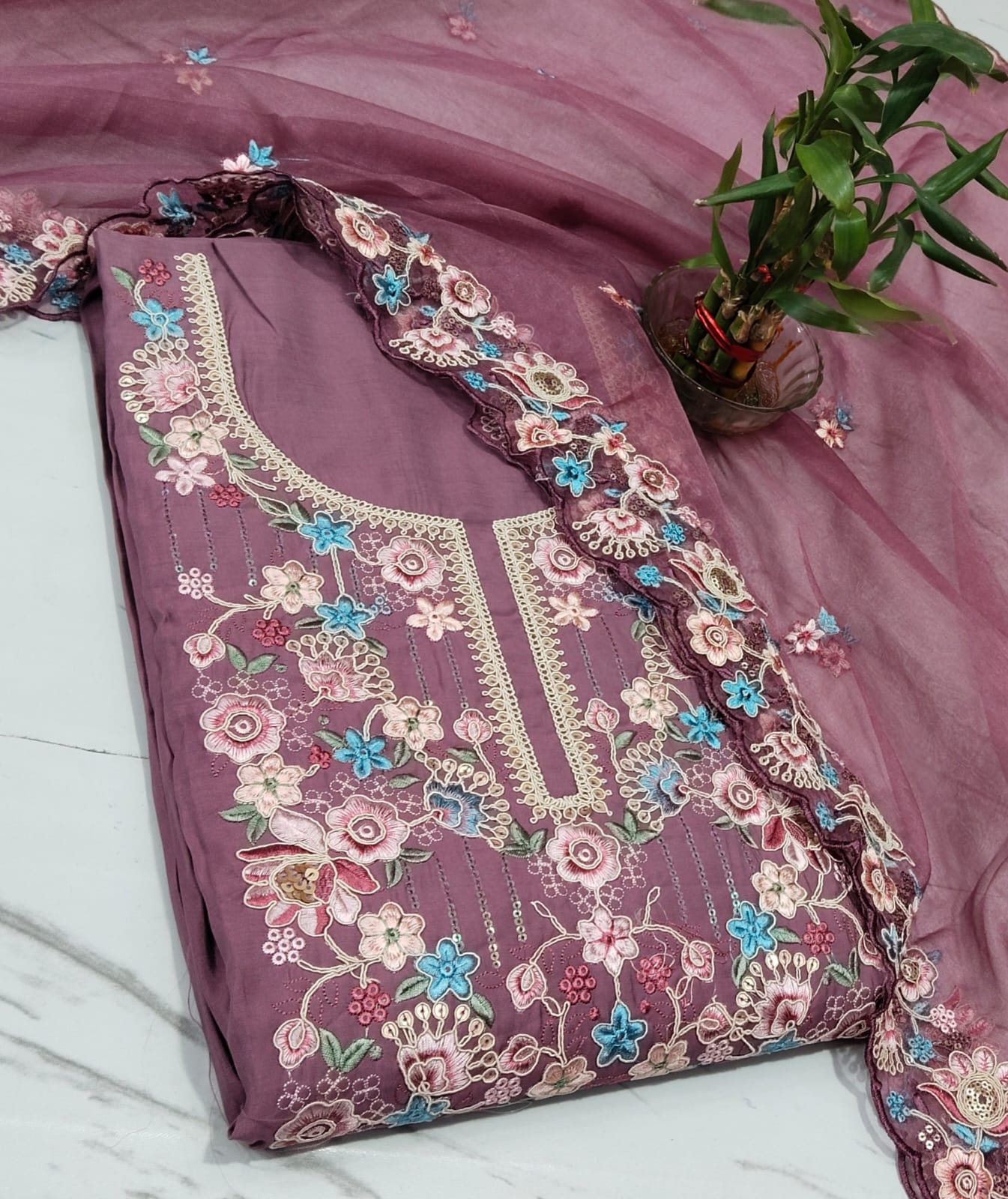 - 👗Top pure mashlin silk with beautiful embroidery & sequence work ht-0047