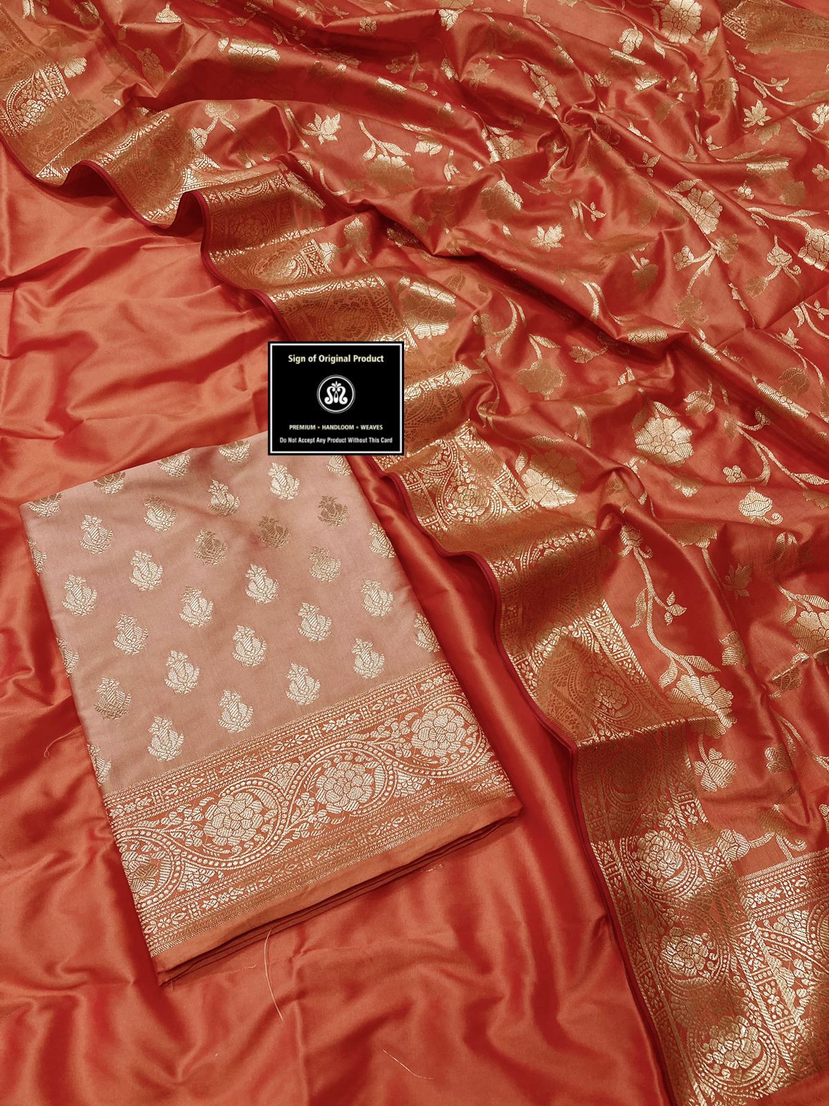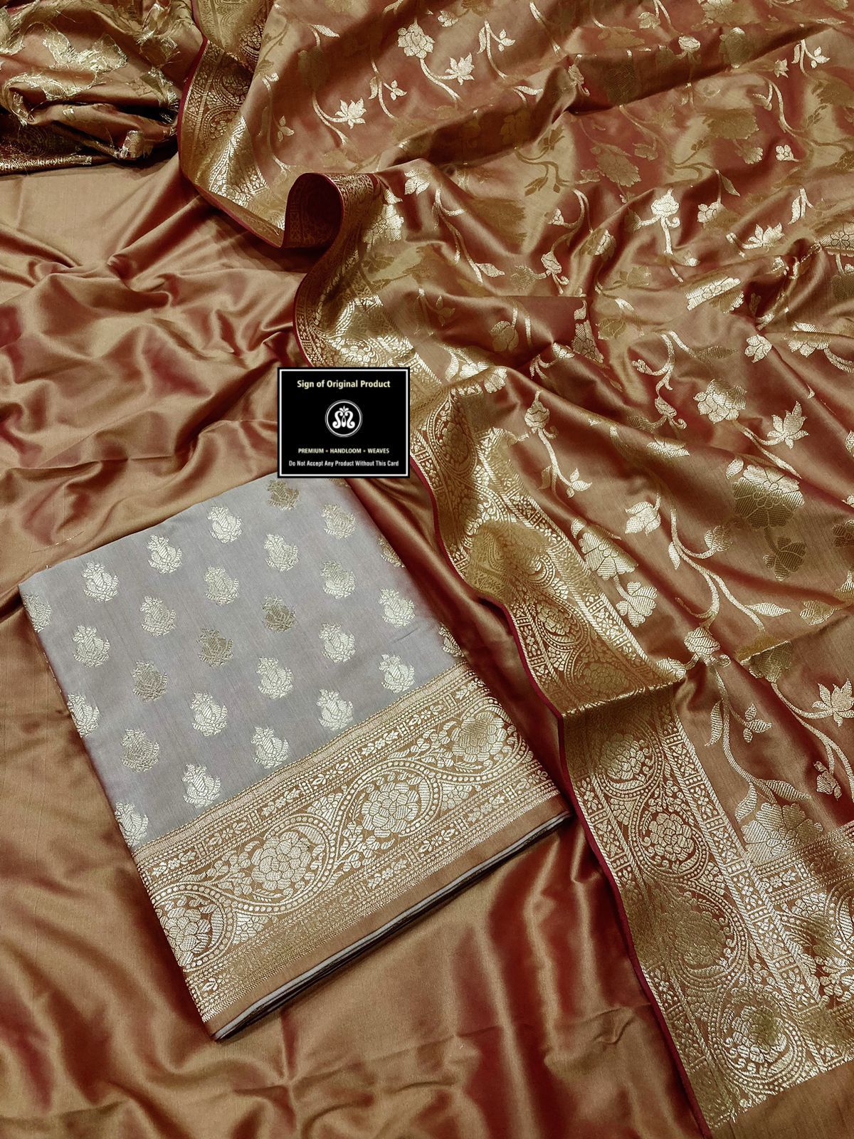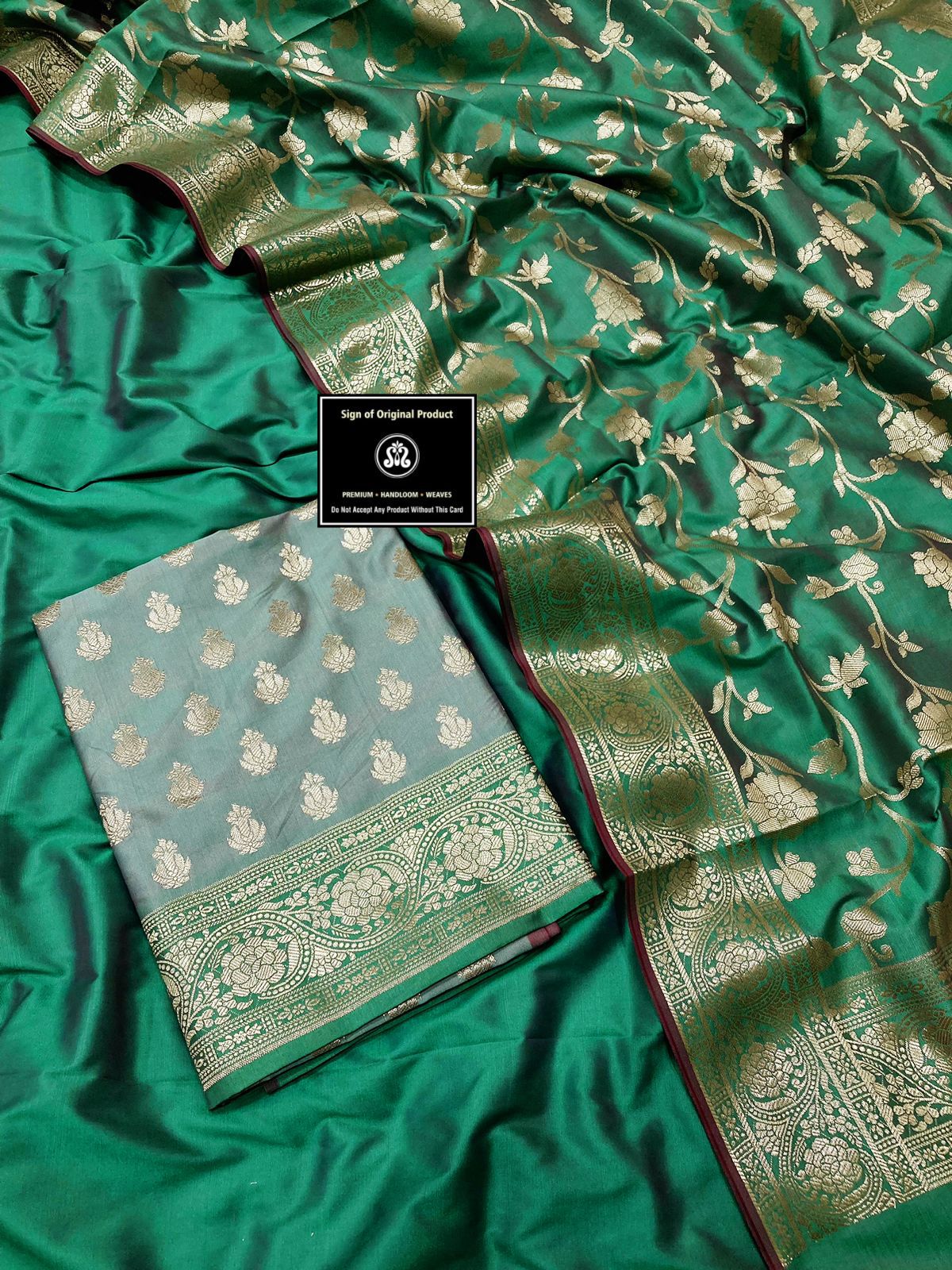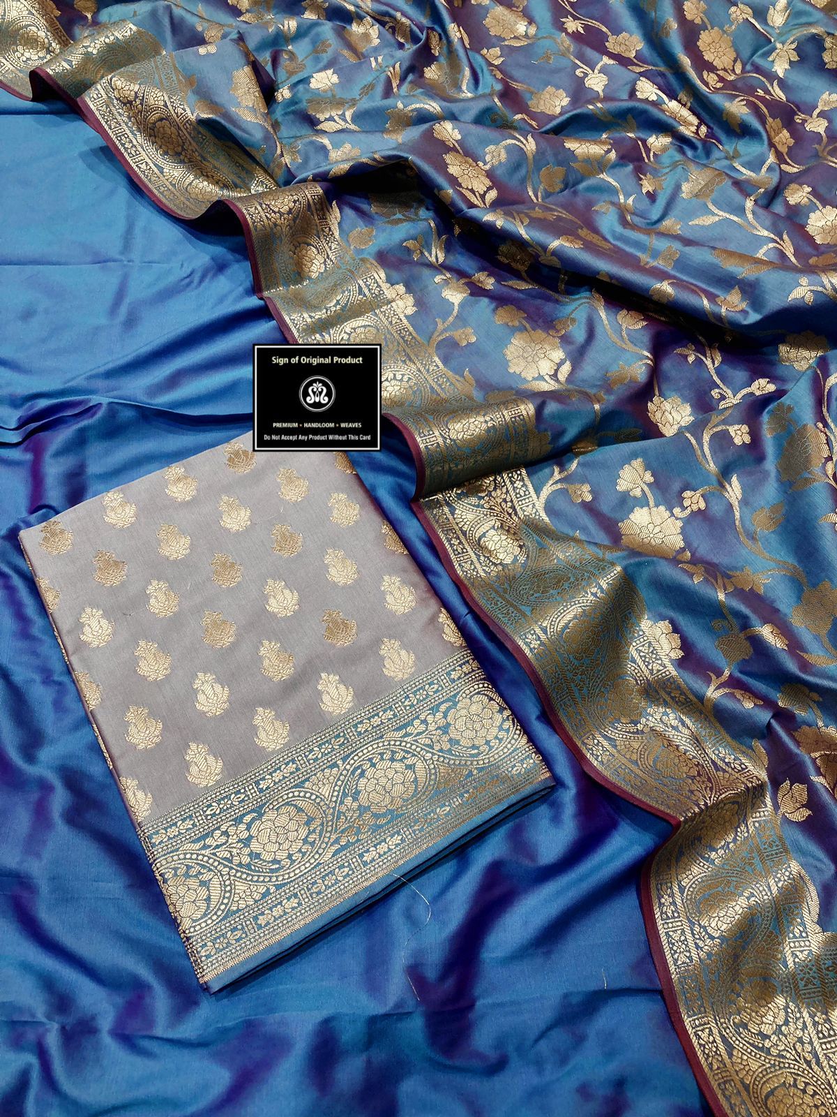Banarasi Katan silk gold Zari Weaving 2d suit with Banarasi Katan silk contact Dupatta and plain Silk bottom