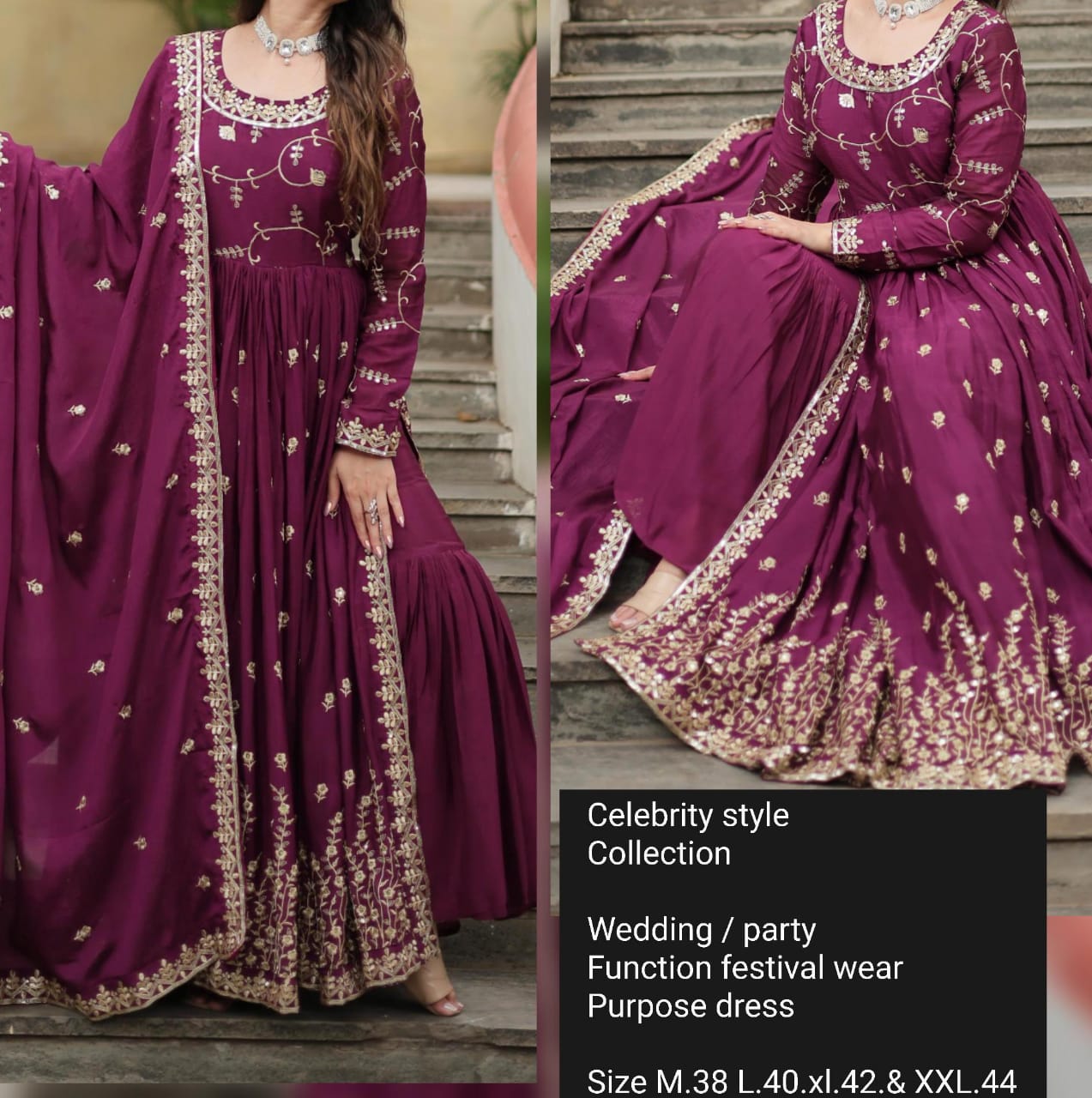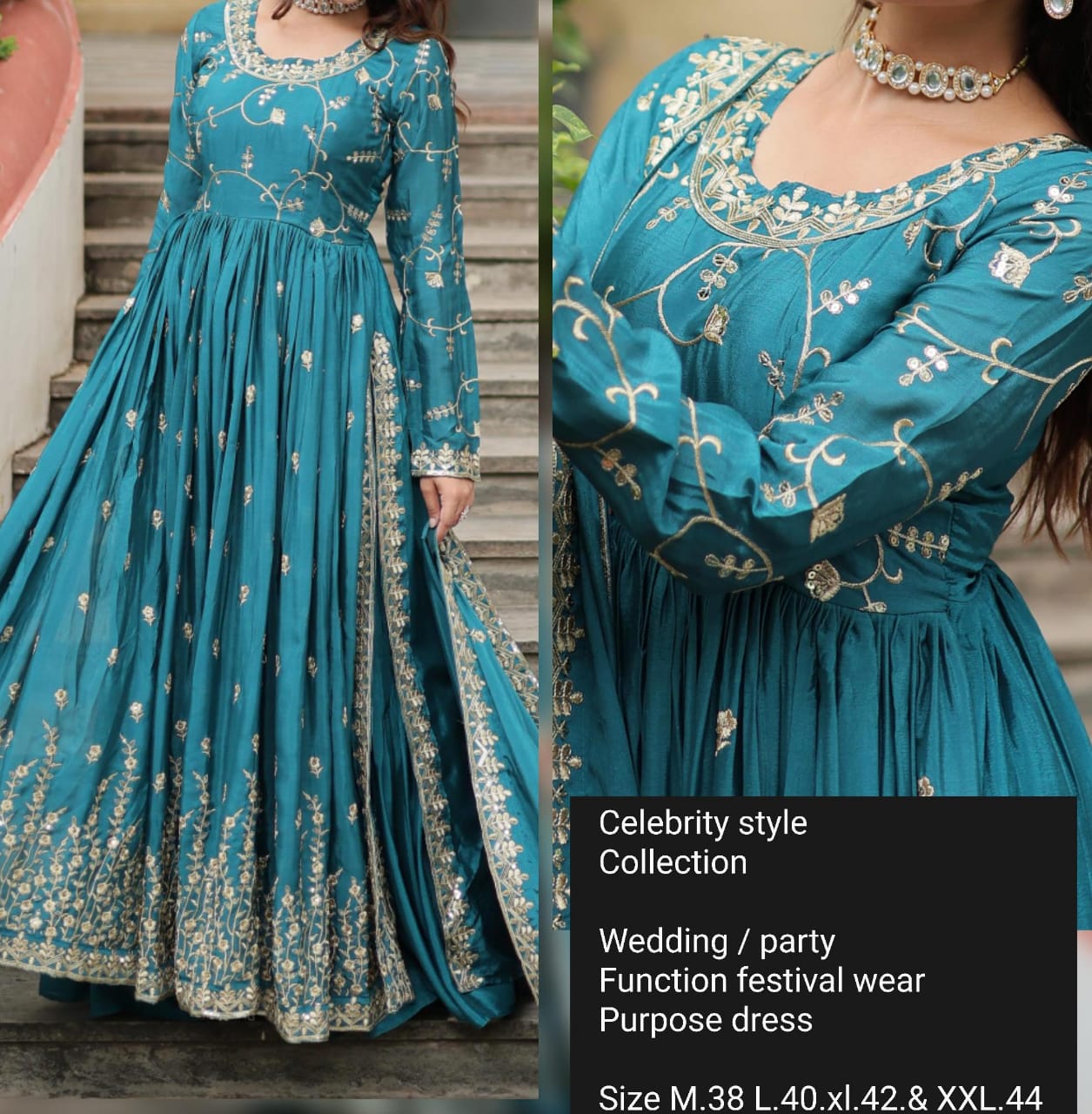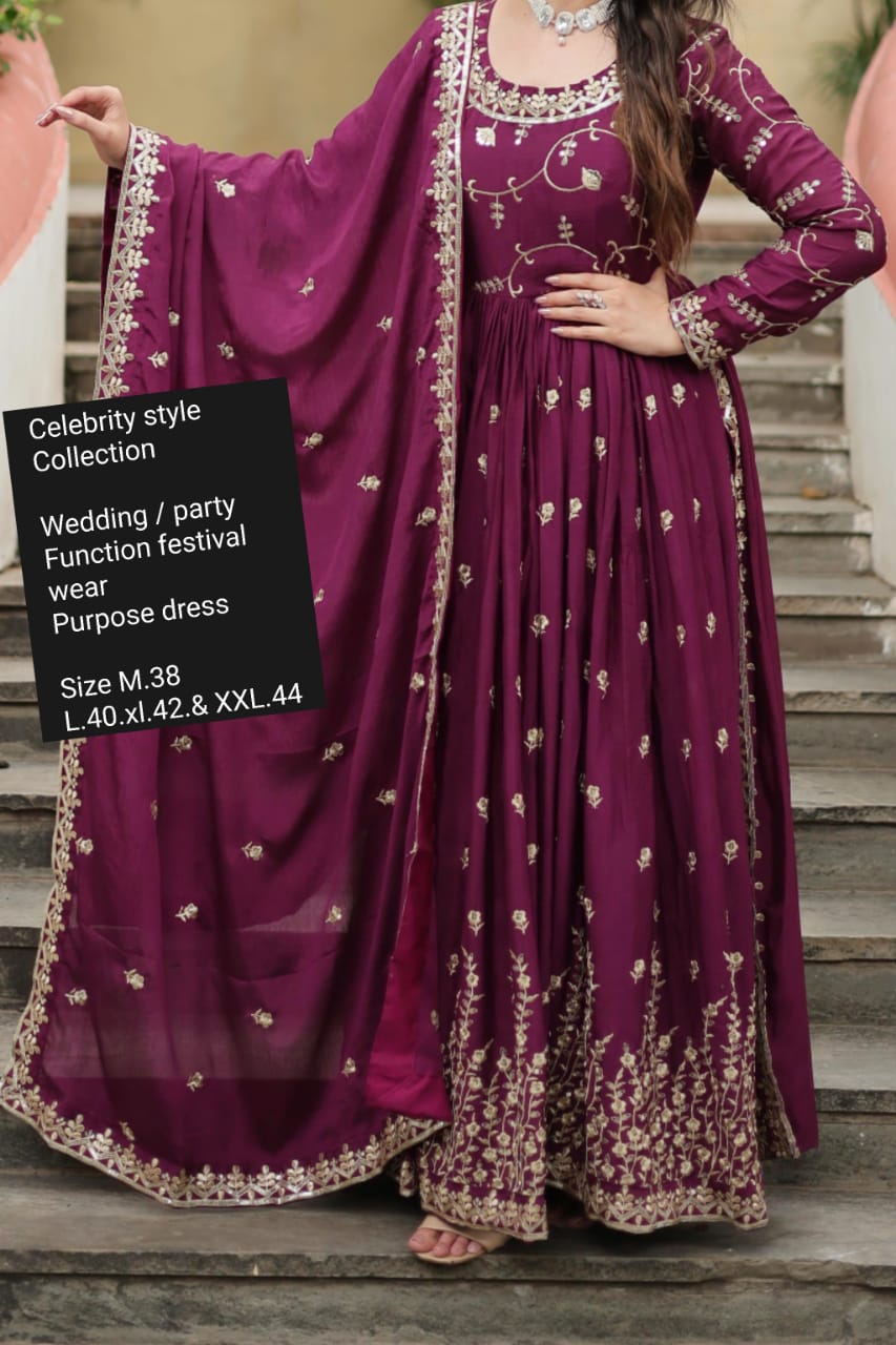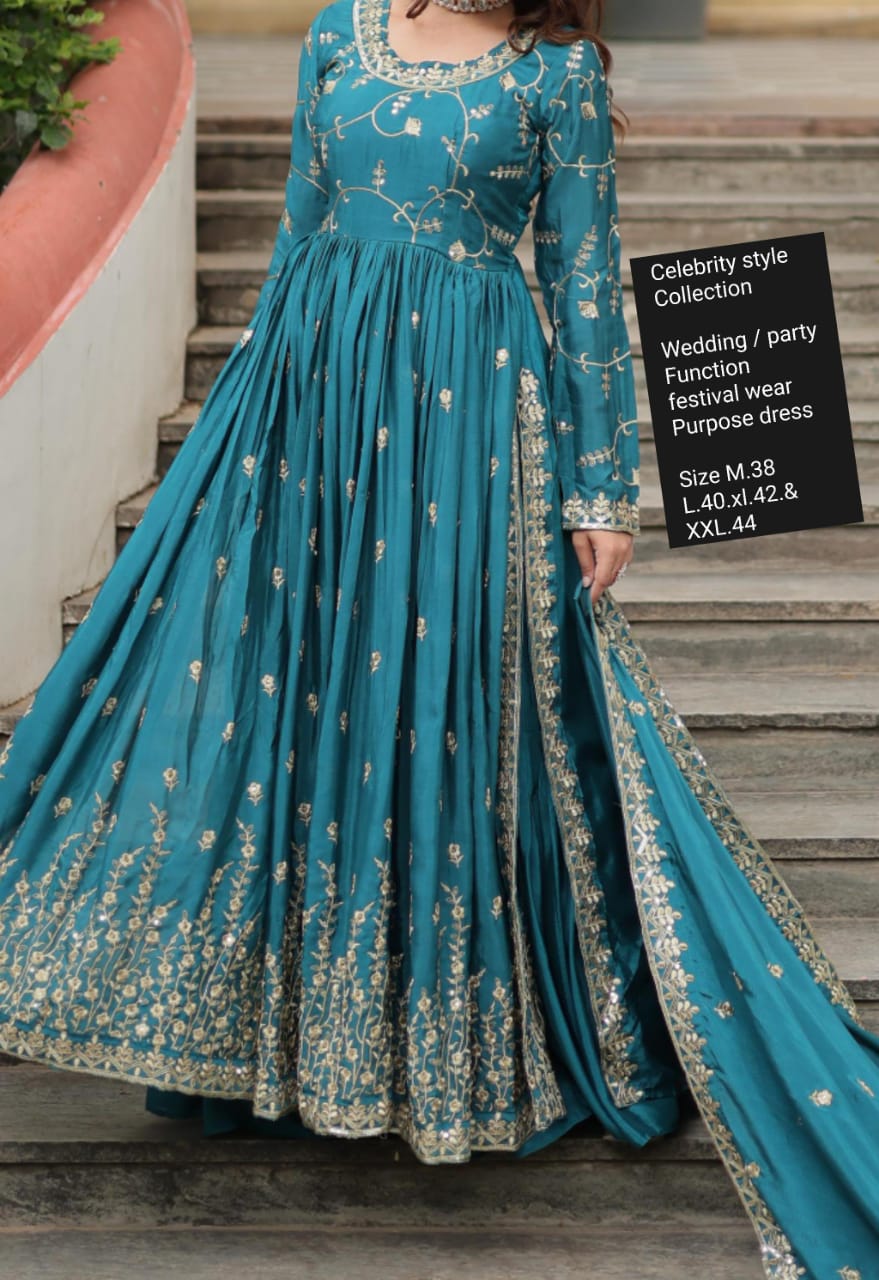 Heavy designer Embroiderd on full dress Dupatta chinon With work Top length 49 to 50