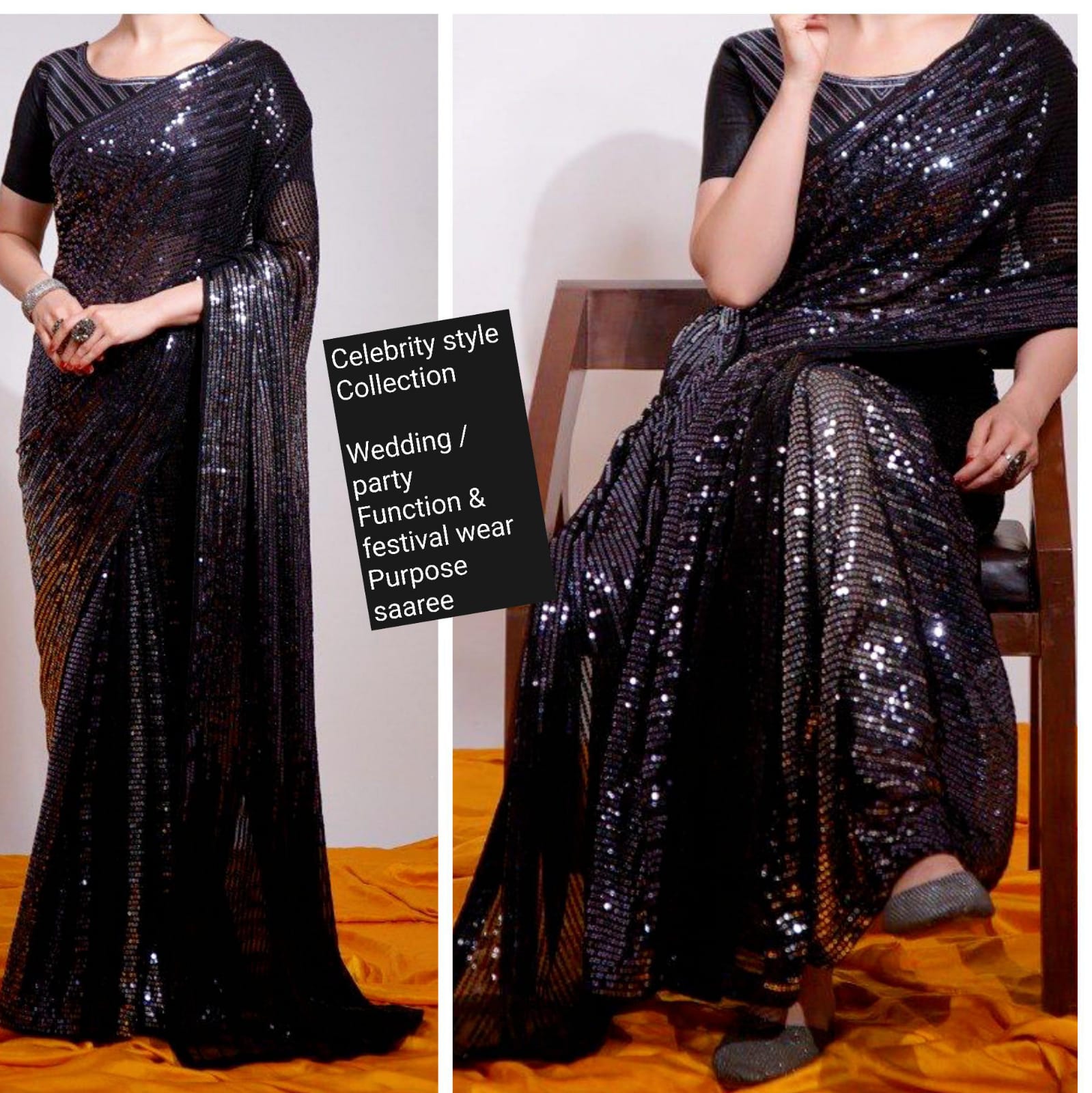 Saaaree facric Finest gorgette Fully heavy sequance work On saaree