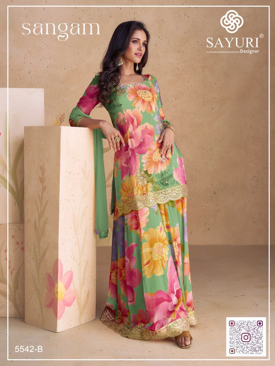 TOP :- HEAVY CHINON DIGITAL PRINT WITH EMBROIDERY 3MM MAT SQUENCE WORK