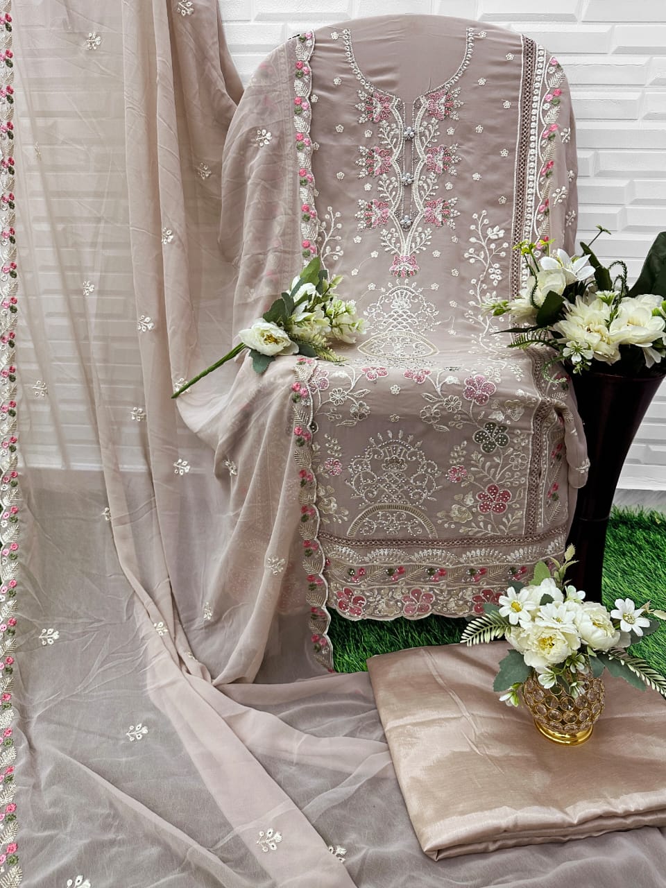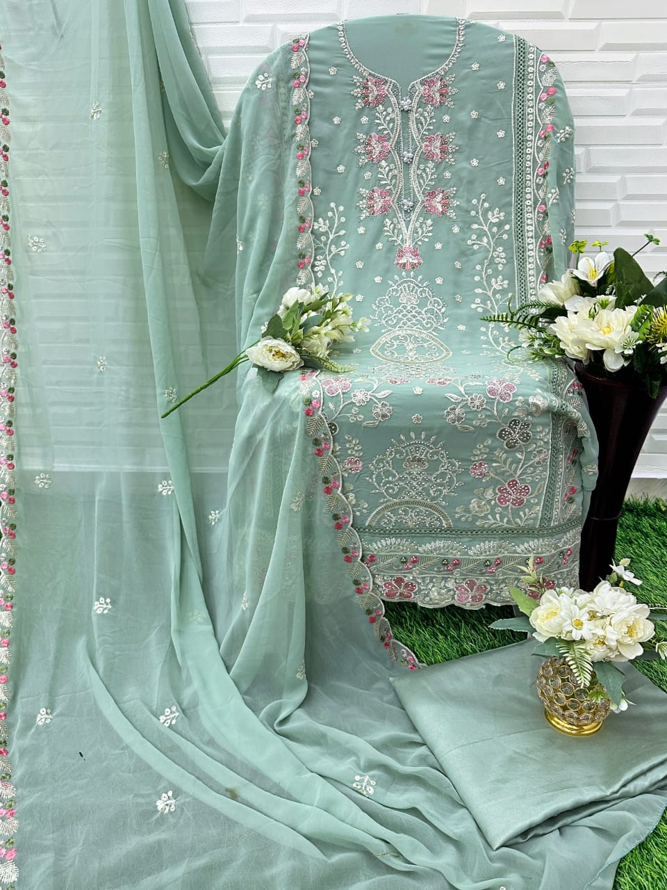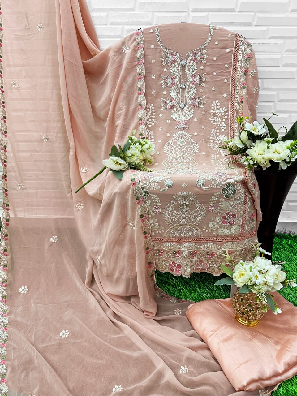 👗Heavy Pure Fox Georgette With Heavy Embroidered Very Beautiful Design And Sequence Work With Handwork High Quality Material