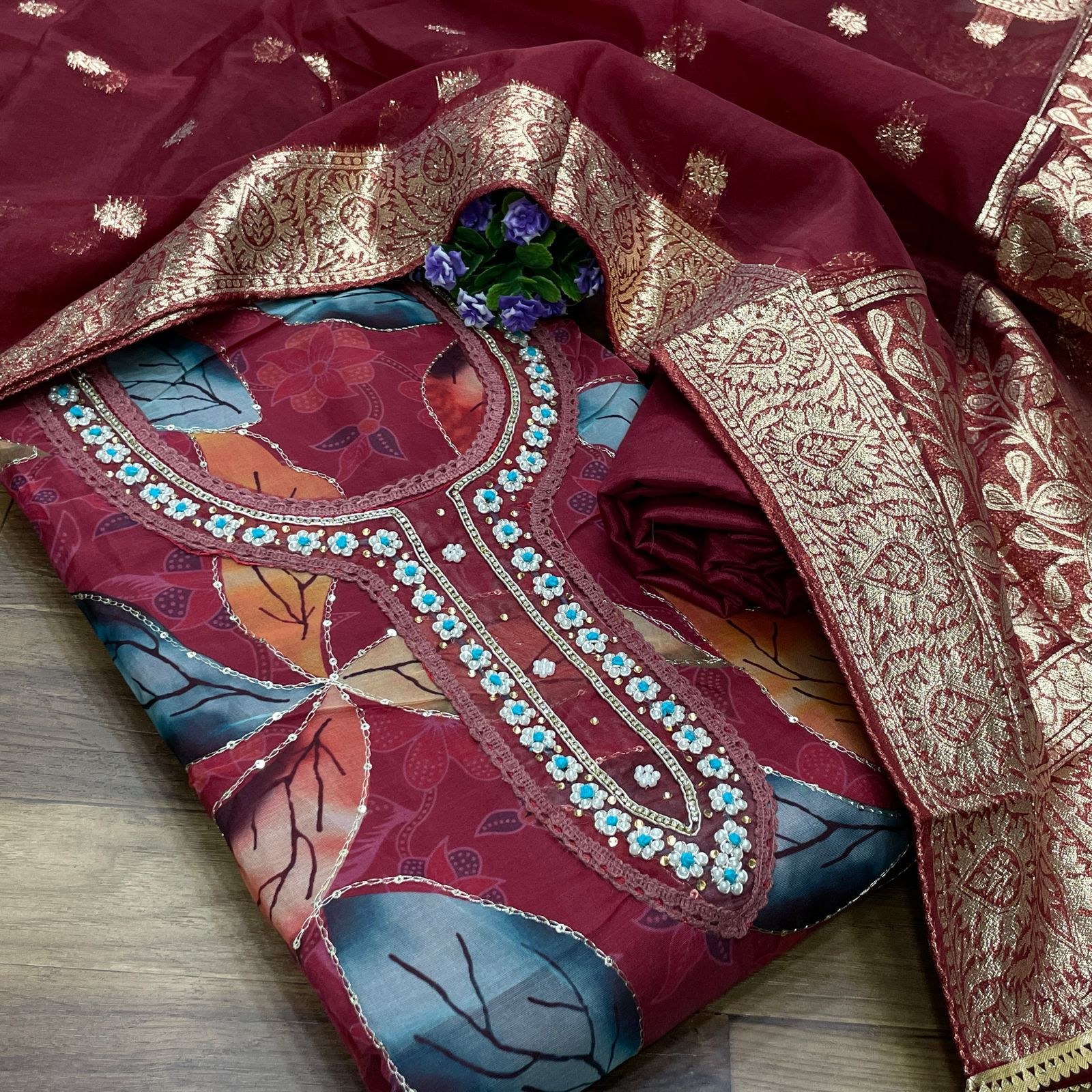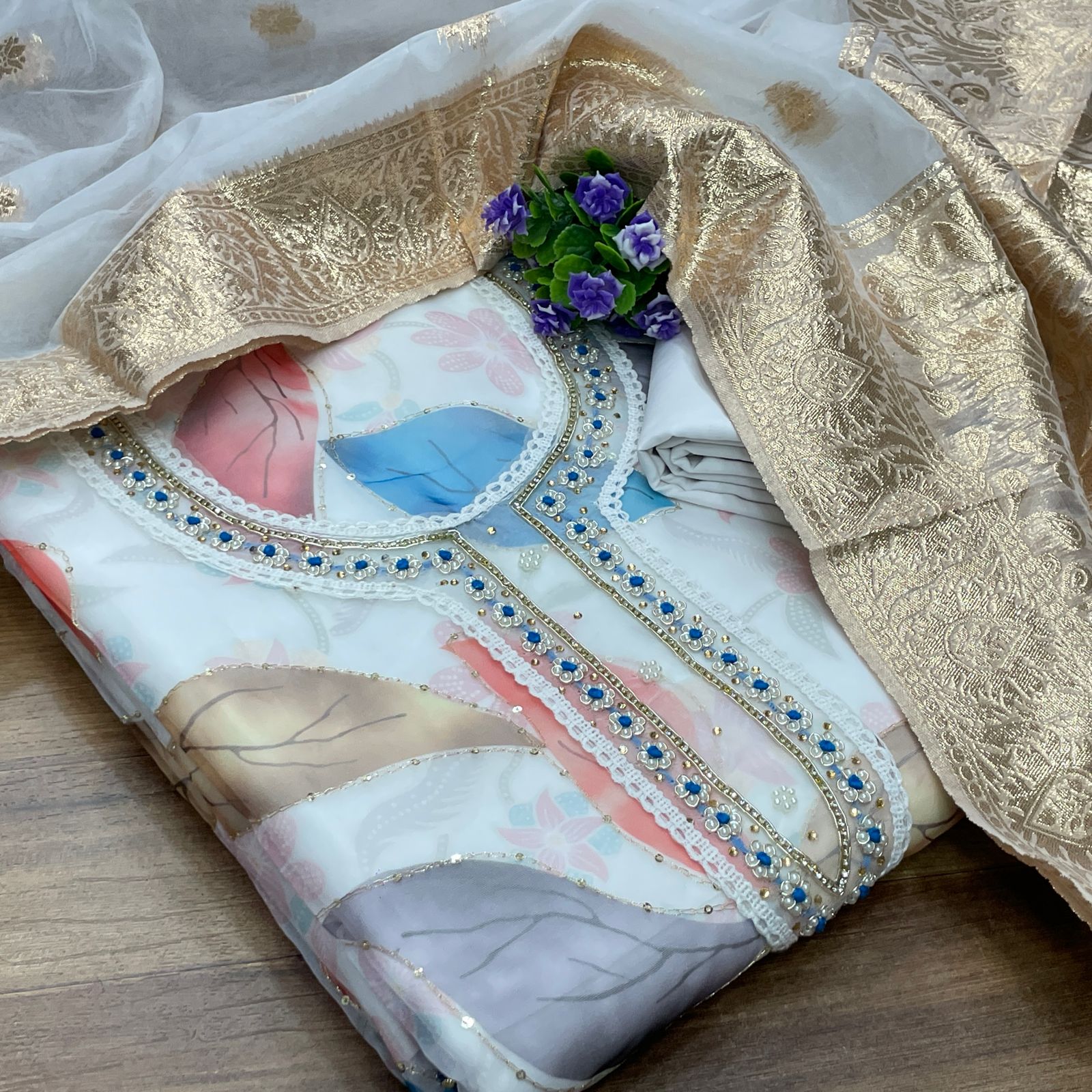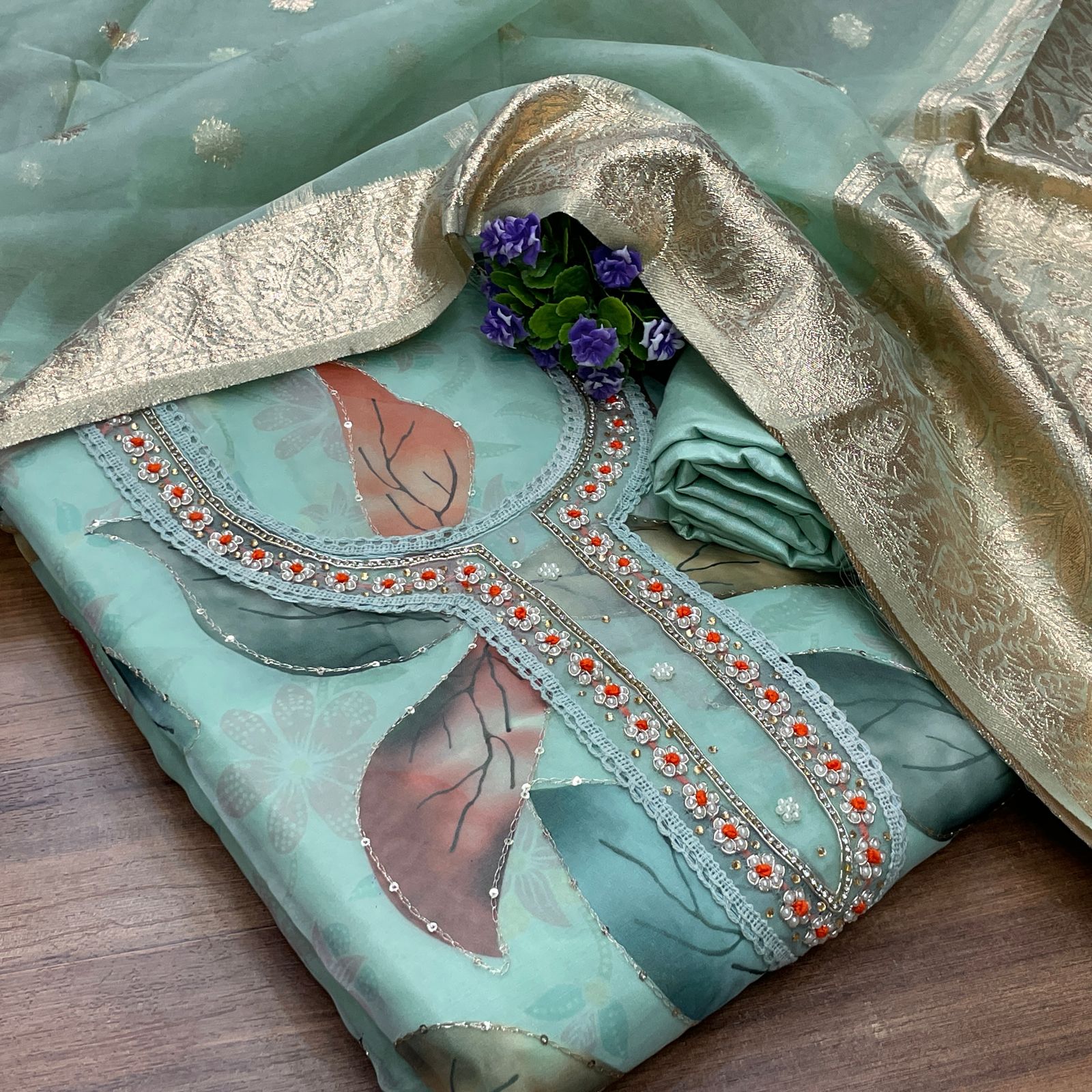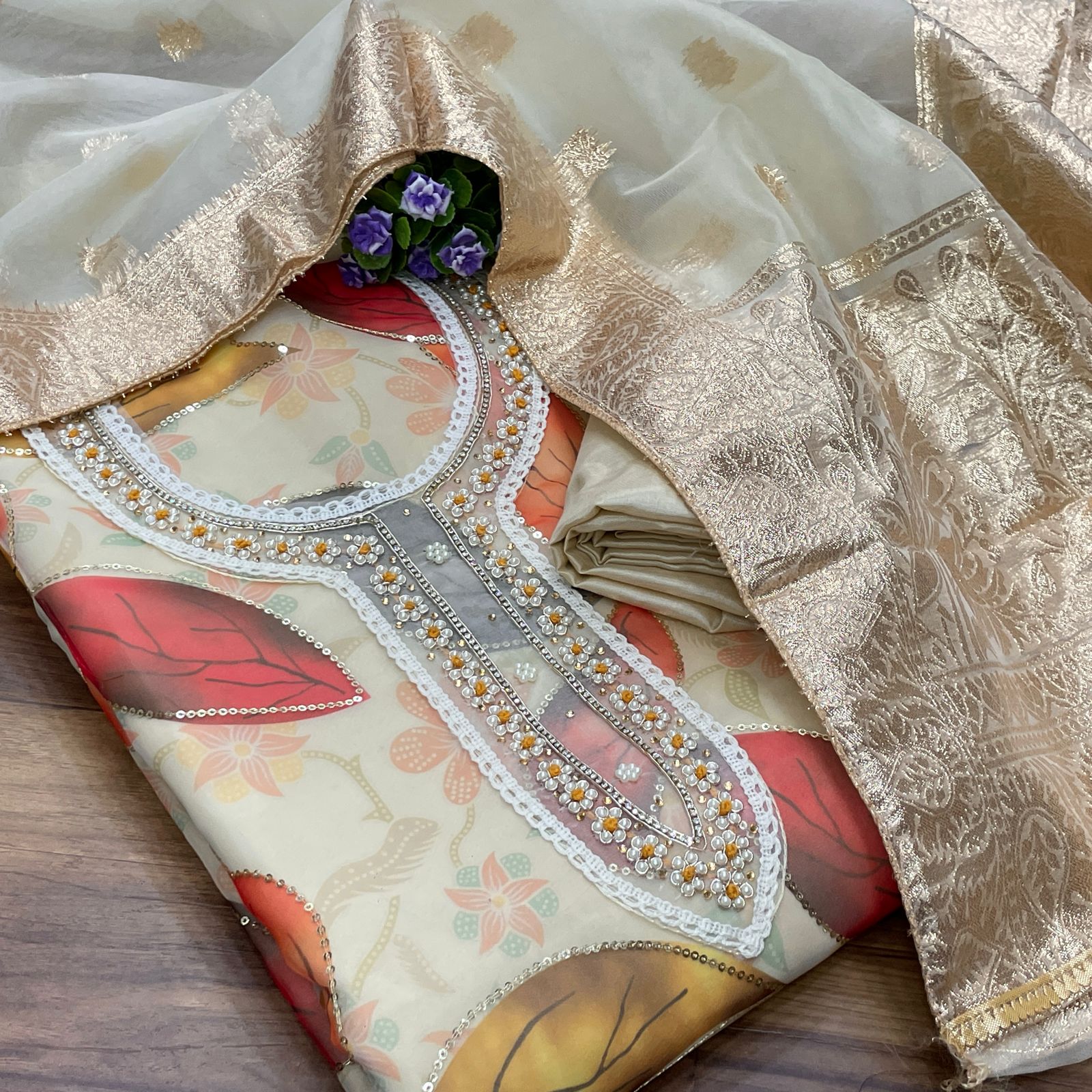 TOP ORGANZA DIGITAL PRINT OUTING TICKI WORK NECK HANDWORK WITH LACE AND INNER