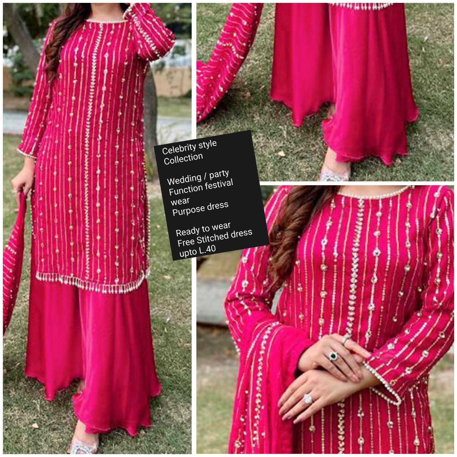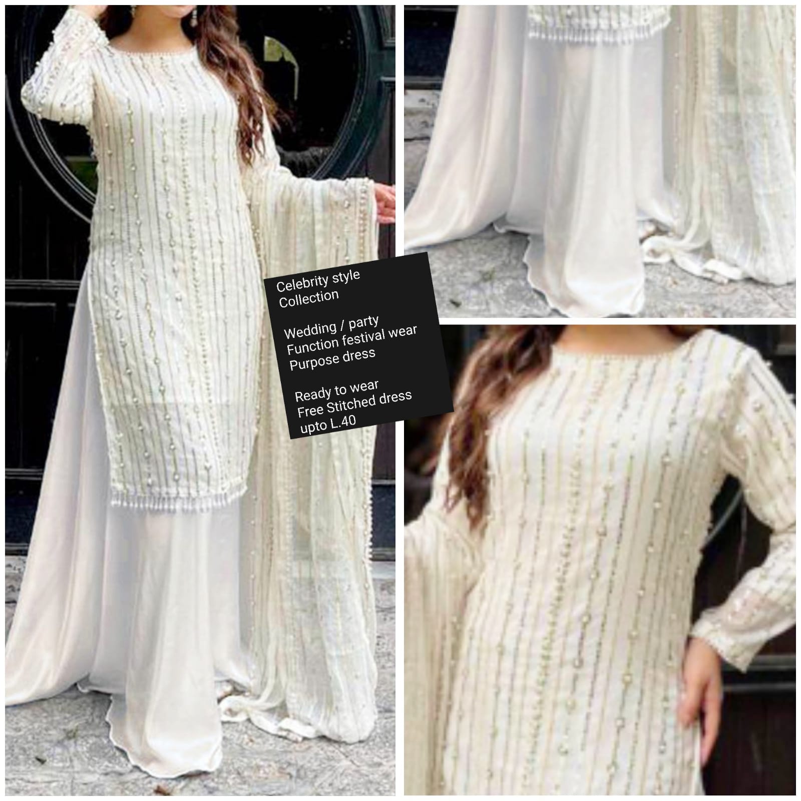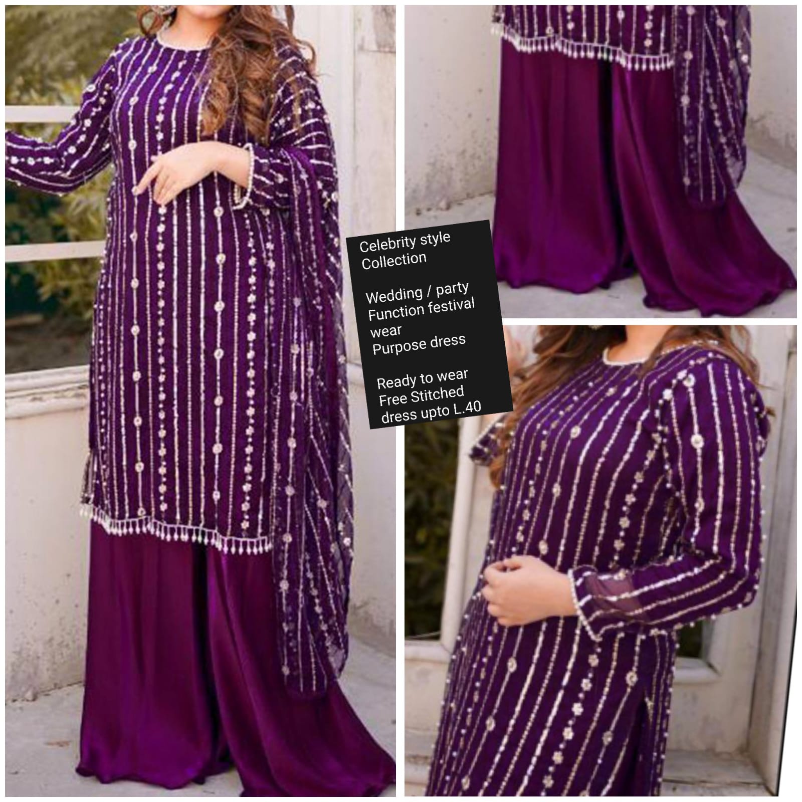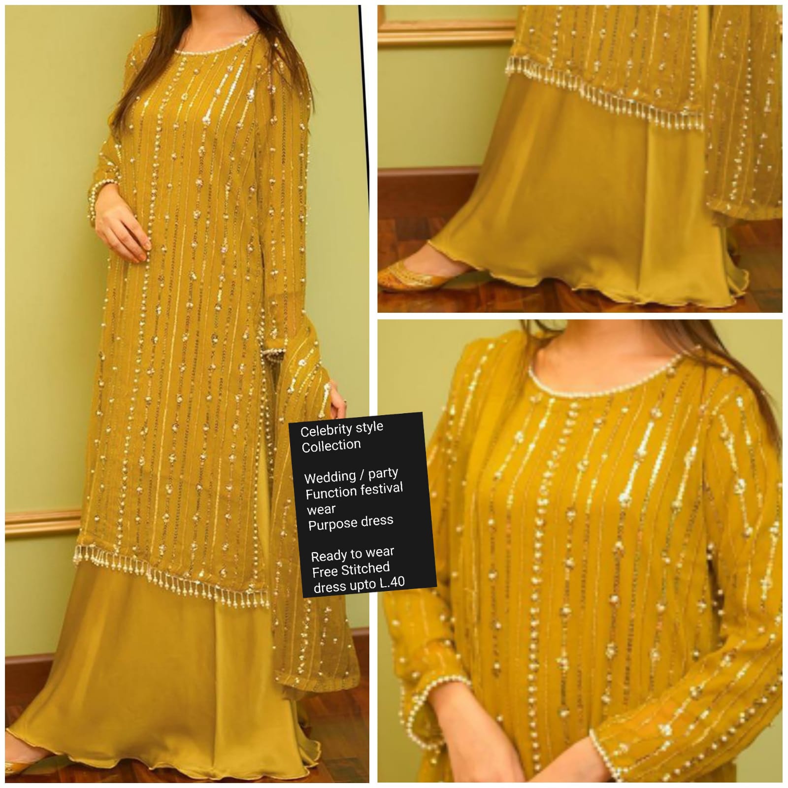 - premium gorgette Heavy sequance & pearl.work dress Soft satin Silk sharara HT-02784