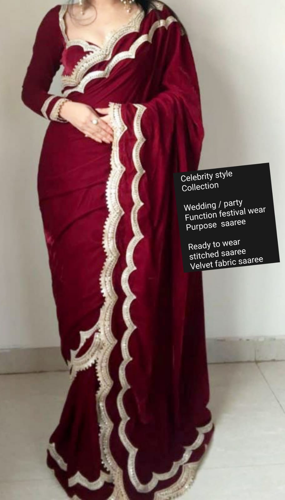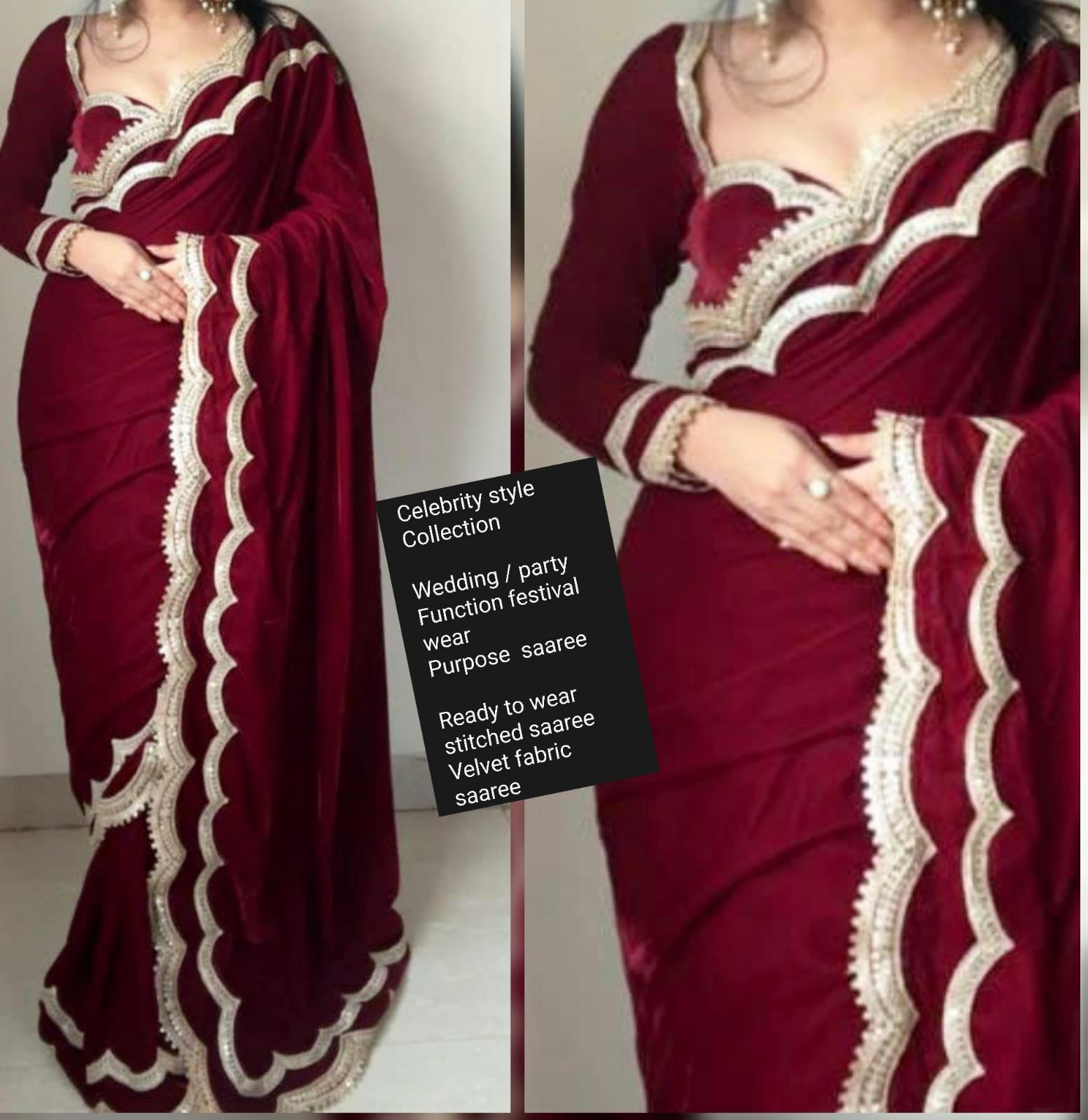 - Premium velvet fabric Saaree & blouse Designer work on saaree HT-07421