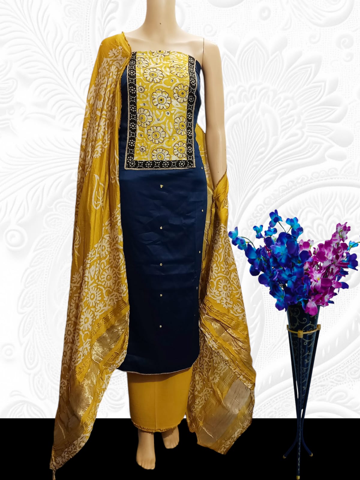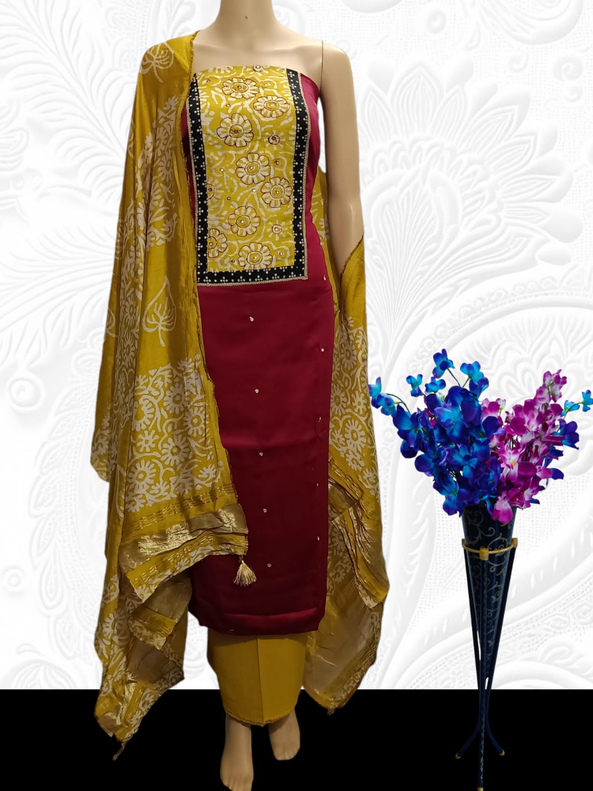 - pure jam silk cotton with beautiful batik print & neckprint +work HT-0242