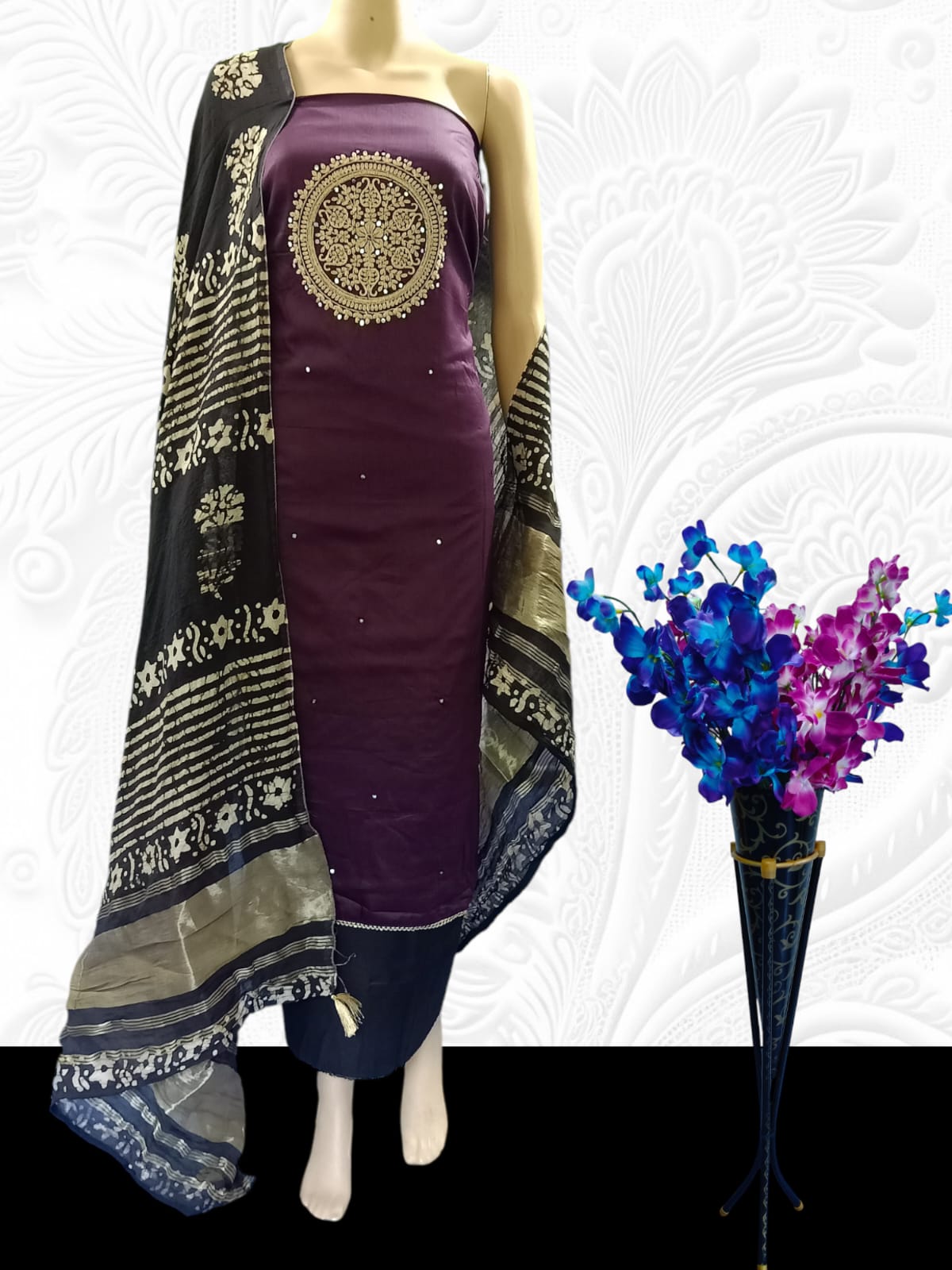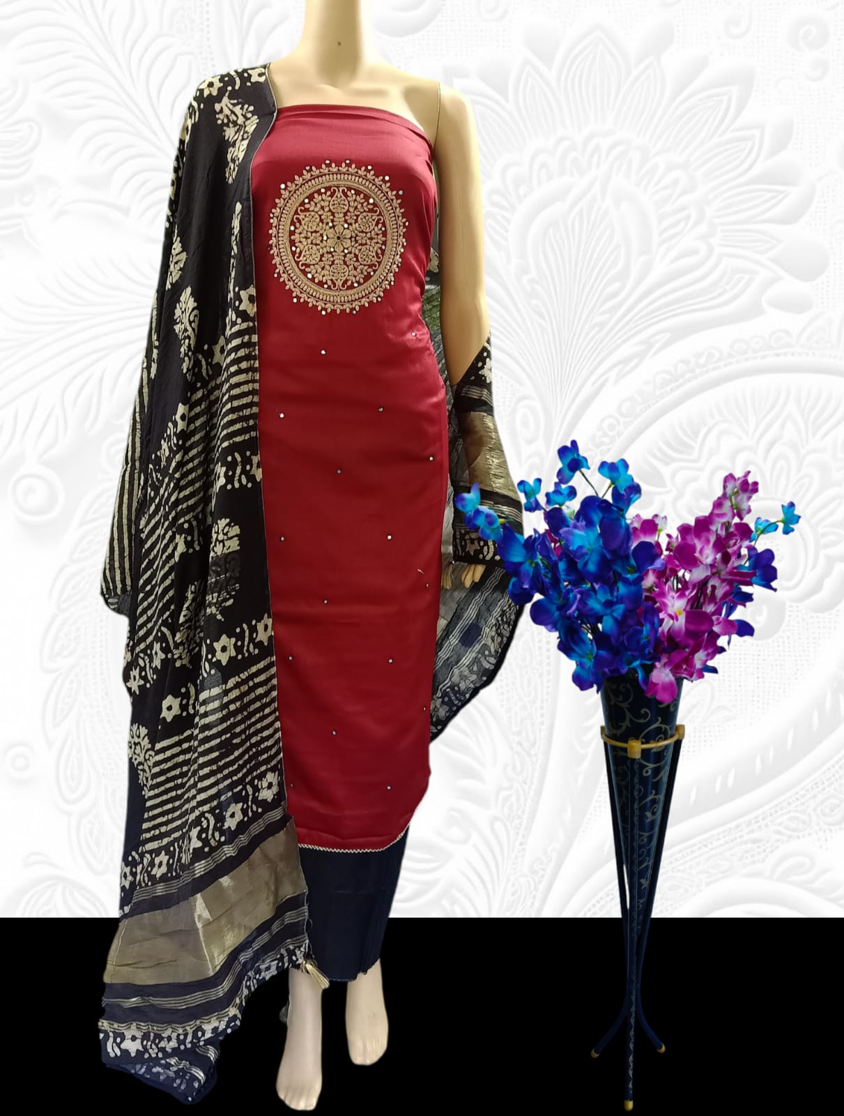 - pure jam silk cotton with beautiful batik print & neckprint +work HT-0246