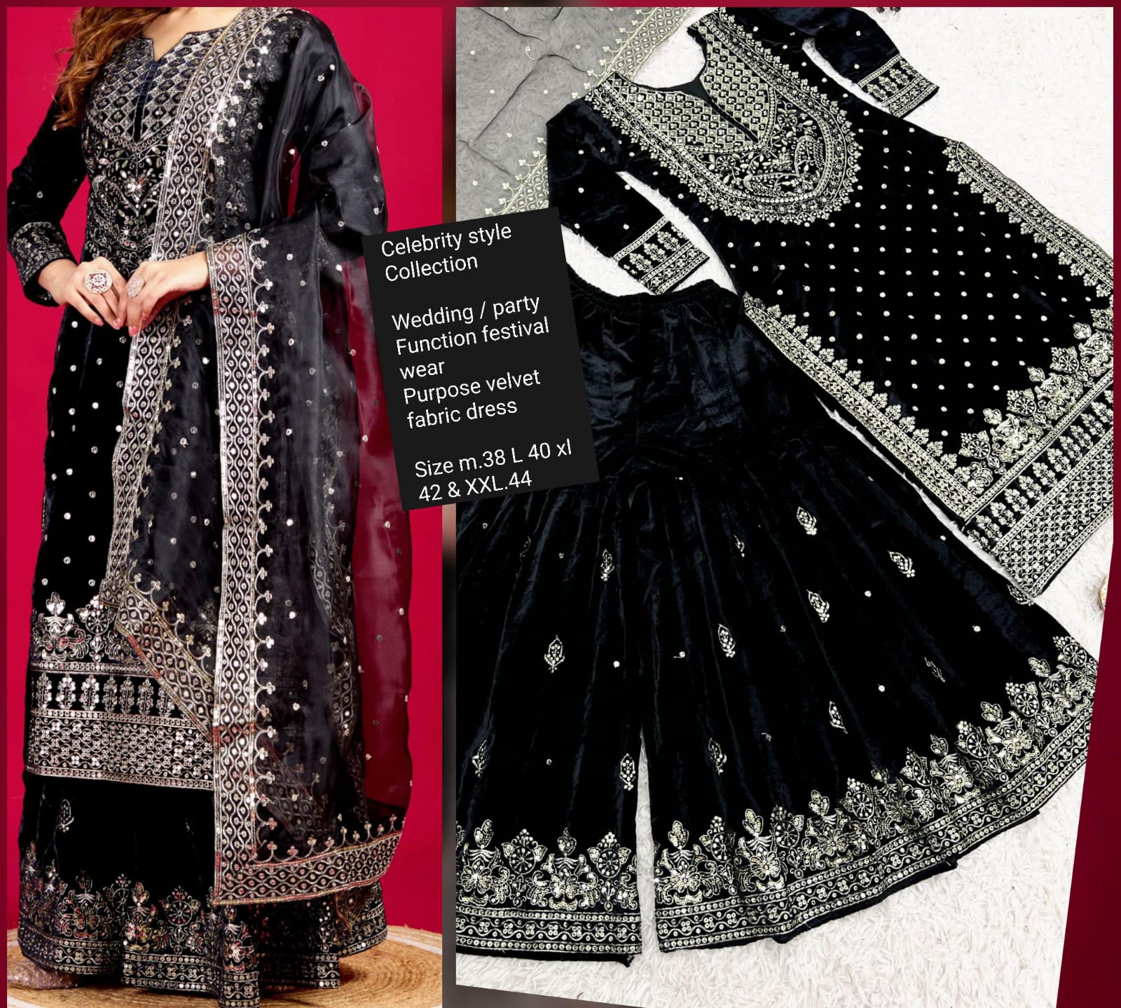- Wedding / party Function festival wear Purpose velvet fabric dress HT-32071